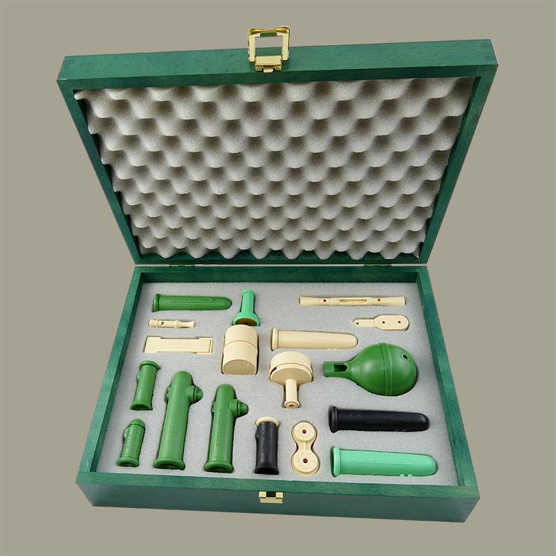 The instructions are stored in a separate folder in the box lid. The various alloy cases are provided in a separate cardboard box. The gift set is covered in soft inlaid material with gold lettering.